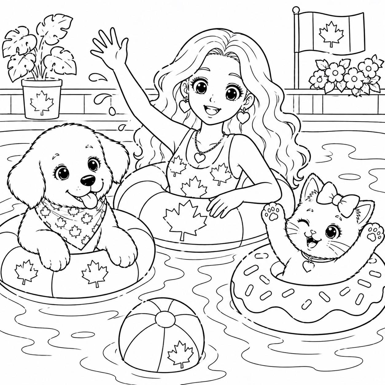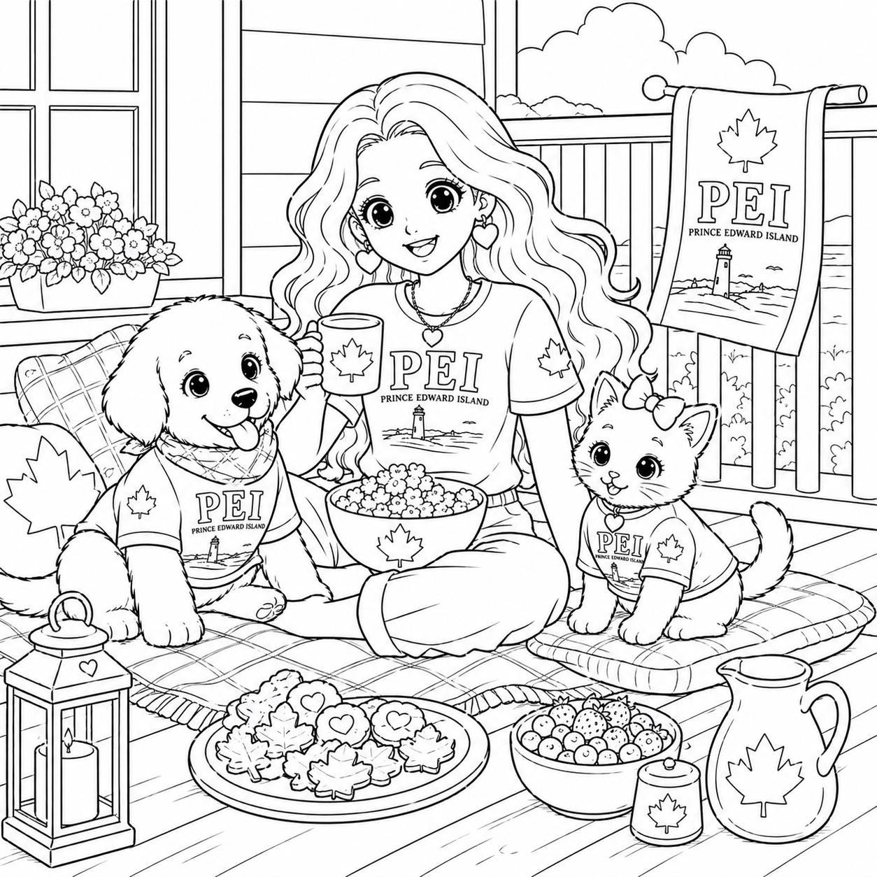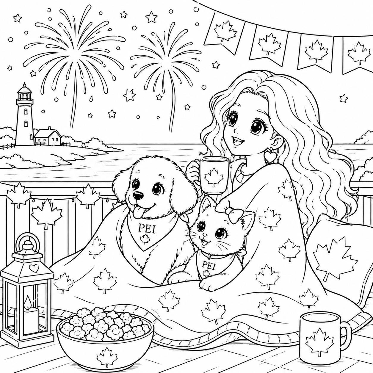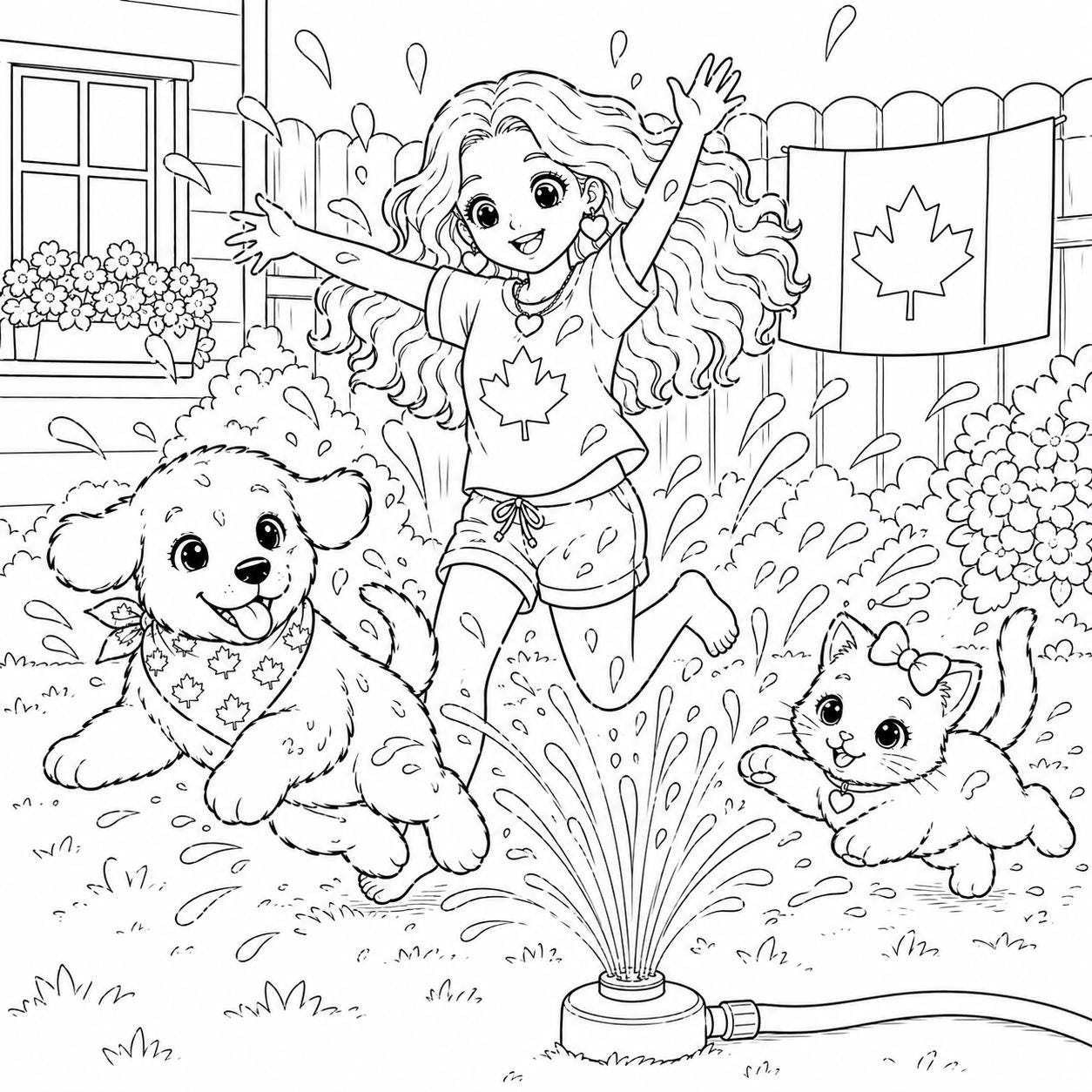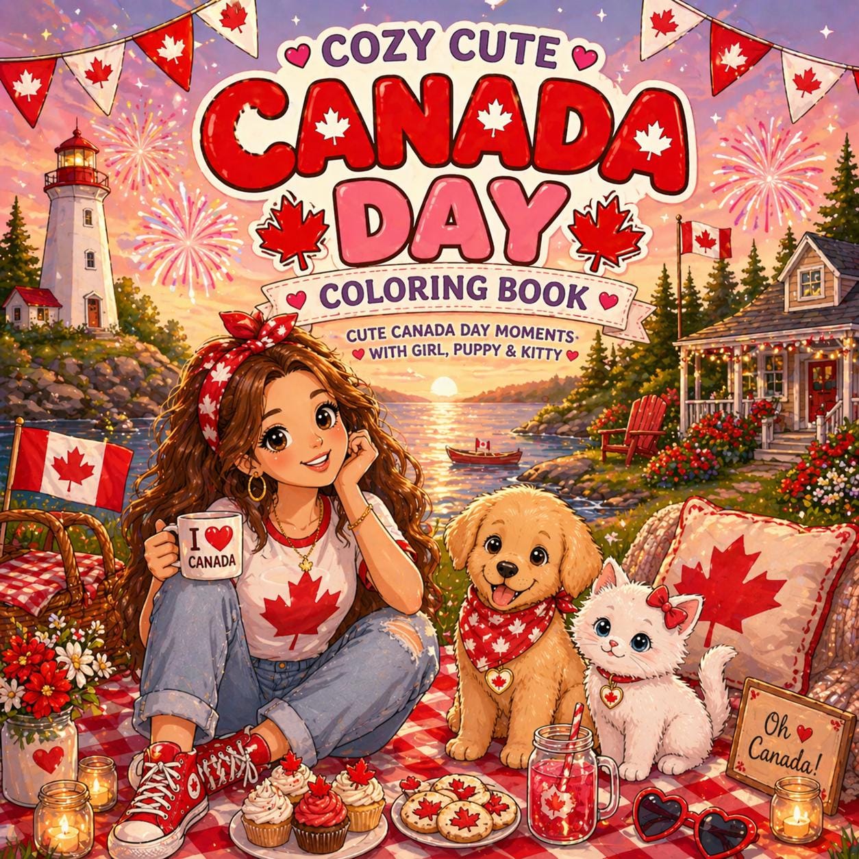 Celebrate summer with this Cozy Cute Canada Day coloring collection filled with adorable, playful moments and just the right amount of chaos. This set features a cheerful girl, her mischievous puppy, and her sweet kitten enjoying Canada Day through fun, lighthearted scenes that feel both cozy and lively at the same time.