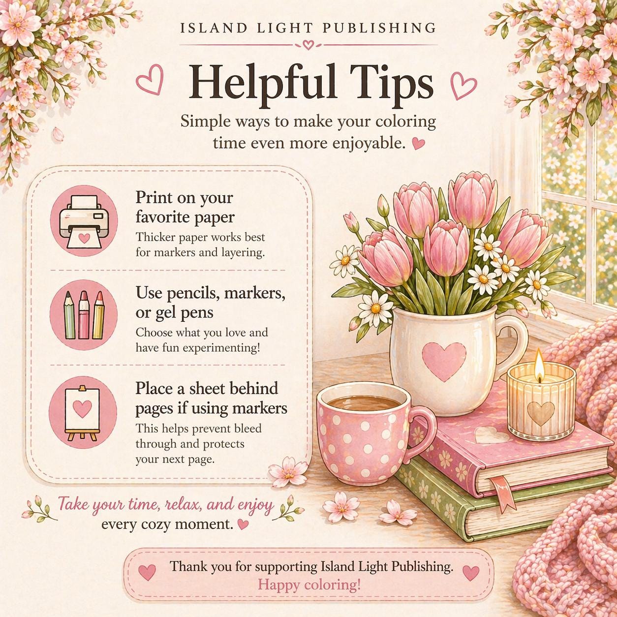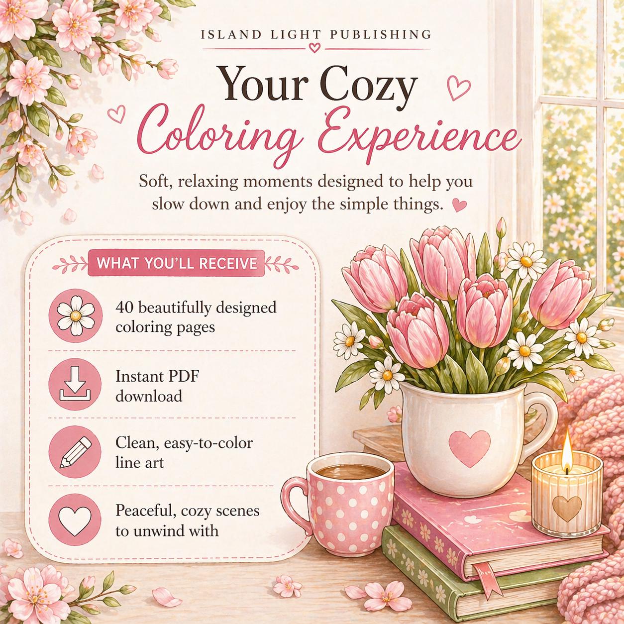 If you enjoy this style, explore the Island Light Cozy Collection. The Cozy line focuses on calm, peaceful scenes like cottages, cafés, and quiet everyday life, while the Cozy Easy line offers bold, simple designs that are even easier to color and perfect for a completely stress free experience.